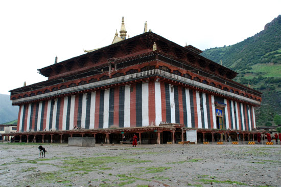 如今的大殿是在文革之后重建的,但規(guī)模和氣勢(shì)與過(guò)去一樣。里面至今珍藏著質(zhì)量上乘的文物精品,如傳說(shuō)為格薩爾用過(guò)的馬鞍和戰(zhàn)刀、八瓣蓮花的金剛像、明清時(shí)的唐卡以及不同歷史時(shí)期的金屬造像,雕刻精美,非常珍貴。