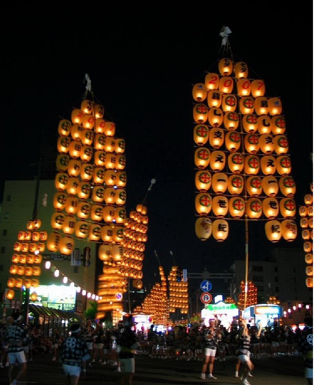 生鬼節:被指定為國家重要無形民俗文化財,流傳于日本東北地方男鹿半島。兩個戴著鬼面具露著兩支大獠牙的人(一個是紅臉,一個是青臉),身上穿著稻草衣,握著菜刀,提著桶,挨家挨戶地拜訪居民,大聲叫著嚇唬那些不勤勞的男人、愛哭的小孩以及不愿意做家務的媳婦。該儀式,除了秋田縣能代市,山形縣游佐町、巖手縣大船渡市三陸町吉浜等多個東北一帶沿海地方都有存在。[20]秋田竿燈祭:日本東北地區代表性的夏季節慶,與青森縣的耐布它祭、仙臺的七夕祭并稱為東北三大祭。竿燈把幾十個馬燈整齊地掛在一個粗竹竿上,竹竿的頂端系著“御幣(剪成細條的紙)”,版權所有聊城聊之旅國際旅行社有限公司,轉載必究!撐竿的人將竿燈或托于手掌,或頂于額頭,或支于肩,或載于腰腹,猶如玩耍中國雜技。西馬音內盂蘭盆舞會(羽后町):為“日本三大盂蘭盆舞會”之一,參加者身著傳統服裝,戴著斗笠,并用黑布蒙住臉,伴隨著用笛子、鼓、三弦的演奏,一直舞蹈至深夜。西馬音內盆踴,已被列為重要無形民俗文化財產。舉行時間是8月16日至18日。
