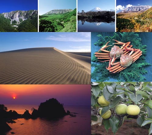 鳥取縣位于日本列島本島的西端,中國地方的東北部,是全日本人口最少的縣,因盛產(chǎn)“二十世紀梨”和“富有柿”而聞名于日本。土地面積占日本總面積不足1%,近90%土地為山地,由山地流向日本海的日野川、天神川、千代川等,分別在下游形成米子、倉吉、鳥取三平原,擁有日本最大的大自然人工天成的沙丘鳥取沙丘。氣候相對溫暖,從春到秋多晴天,冬天有降雪,四季變化鮮明。主要產(chǎn)業(yè)有電機、食品、紙漿、造紙、金屬制品等。海岸線長約一百三十公里,海岸平緩,有很多天然良港,漁業(yè)發(fā)達。