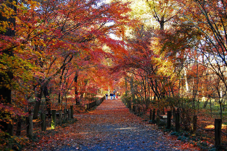 武藏丘陵森林公園位于埼玉縣的比企北丘陵。1974年7月22日開園,是日本最早的國營公園。附近地域的民眾都直接稱它為森林公園。公園面積達300萬平方米,園內有大片的天然林,星羅棋布,點綴著41個湖沼。園內有一條全長17公里的自行車專用道,游人可以租用自行車在林間悠游。