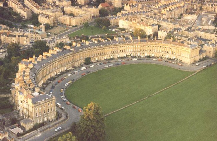 巴斯的許多古老壯觀的建筑都出自約翰•伍德父子之手,父親老約翰•伍德在18世紀設計巴斯的城市規劃時,建造了一座象征太陽的圓形廣場和一座象征月亮的皇家新月樓,兩者之間由布魯克大街連接,自此,這種以圓形或新月形廣場配置街屋的形式蔚為風潮,對倫敦和蘇格蘭的愛丁堡的城市規劃都產生了很大的影響。