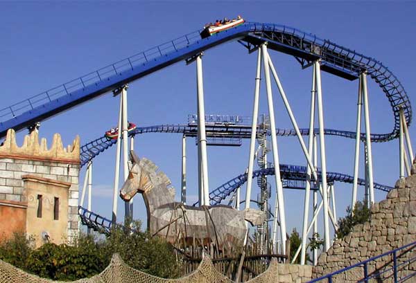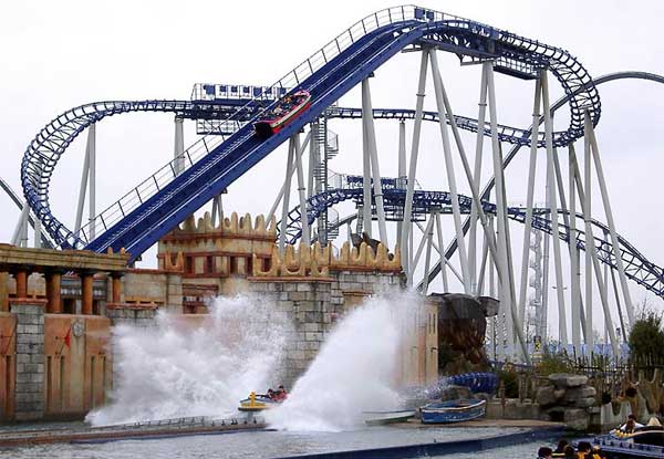 名為“京達卡”(Kingda Ka)的最新過山車是世界上最快的過山車,它的高度達到了139米。開始時水壓彈射器將游客乘坐的車速提高至每小時206公里,穿過270度的環形通道,讓人有強烈的失重感。這座過山車有一個雙軌道站臺,可同時支持4駕過山車在2條軌道上收放游客,總功率可達到7400馬力,每小時可以接待多達1400名游客。“京達卡”是目前為止,世界上最高,同時也是最快的過山車。
