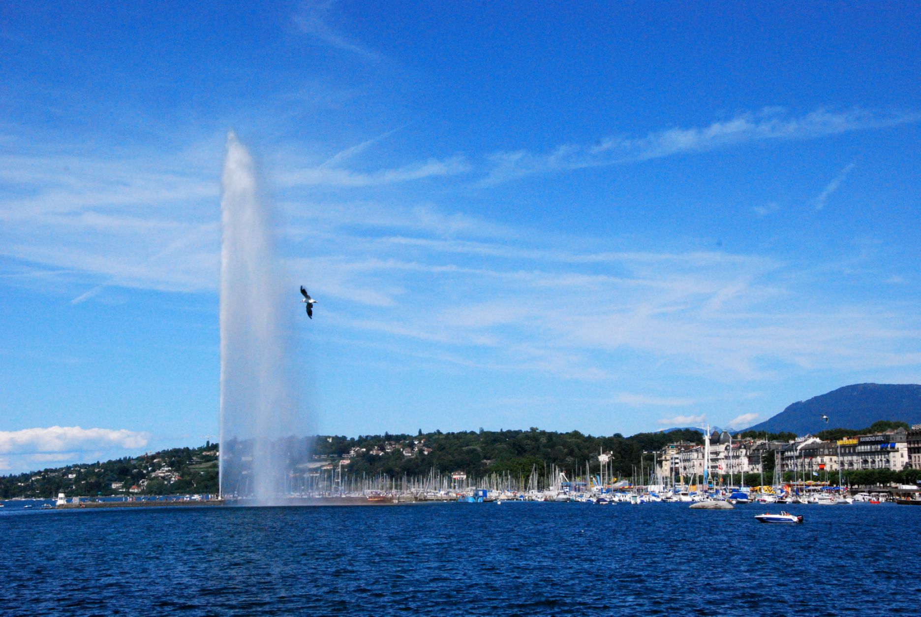 500公升噴水量的噴泉是由130馬力的電力推動為世界上最大的人工噴泉,那沖天而起的高大水柱,從湖面直射天際,蔚為壯觀。這個人工噴泉最初是1891年建成,當時所噴射的高度只有90米。1958年改建后至今。它的動力是兩組安裝在水下的水泵,總重為16噸,由每分鐘達1,500轉的500千瓦2,400伏的發動機帶動。每個水泵的功率為1,360匹馬力,噴泉的流量為每秒500公升,噴口處的水速達每小時200公里,進入噴水管中的水的壓力為16個大氣壓,水柱的高度在無風時可達140米,停留在空中的水量達7噸之多。水從噴嘴噴出達到頂峰再回到水面,每個回合為16秒。日內瓦湖是美麗的。自古以來,許多名作家、大詩人都贊美、謳歌過它。亨利•詹姆斯稱它是“出奇的藍色的湖”;拜倫則把它比喻成一面晶瑩的鏡子,“有著沉思所需要的養料和空氣”;巴爾扎克則把它說成是“愛情的同義詞”。其壯觀景象,從日內瓦各地都可以望得見,如今大噴泉于每年三月初到十月的第一個禮拜天為止,除了陰雨天之外,每天都準時做“噴水表演”,供民眾參觀。