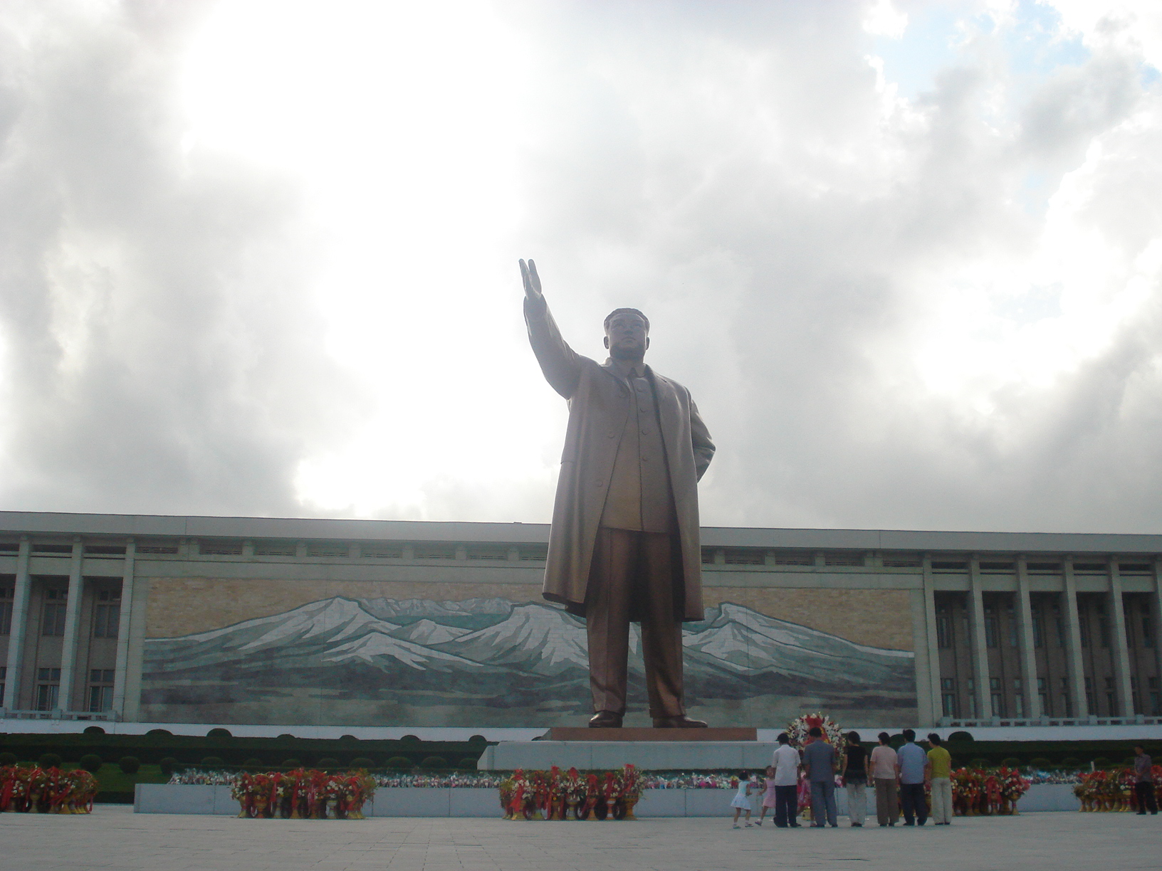 金日成廣場(?????),是朝鮮民主主義人民共和國首都平壤市的中央廣場,位于大同江畔。面積達到75000平方米,版權所有山東聊城聊之旅國際旅行社有限公司,轉載必究!是世界上第十六大的廣場,于1954年8月竣工,也是平壤當局舉辦慶典和紀念活動的中心場所,地面由花崗巖鋪設而成。廣場上以巨大的金日成銅像為中心,兩側是紅旗下的群像雕塑,后面是朝鮮革命博物館。金日成廣場西側是人民大學習堂,東側為主體思想塔。