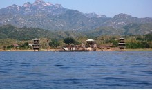 易水湖位于保定境內易縣城西南30公里處,是50年代利用四周高聳的山勢而修建的一座人工湖。水面面積27平方公里,最深處48.5米,湖的南側與狼牙山相連,北側是紫荊關,西側是海拔高達1283米的五峰寨,東側是九龍山。易水湖鎖住易水河上游水流匯集成湖,水質清澈純凈。