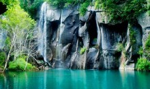 綠淵潭位于吉林省長白山國家自然保護(hù)區(qū),因池水碧綠深窘而得名。綠淵潭瀑布飛流直下,最高落差達(dá)26米,瀑水落于巨石而四漸,而后流入深潭。每逢霧起,潭上水霧彌漫,與高山岳樺、曠古巨石渾然而一體,美不勝收,恰似人間仙境。