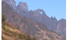 位于縣城西部,處鐘下及應德諸村交界。山有玉盤映月、藍鯨揚波、孤舟引渡、鳳巖風暢、老翁窺斗、道人祝凡、漁父待潮、蟠桃慶壽、蛤蟆獨處、蝙蝠群棲、片瓦寒宮、銀壺仙液、幽徑漏光和斜谷追光等奇石怪洞24處。據舊志載,后唐清泰二年(935年)建隱峰寺,宋代建仙巖寺?!暗廊俗7病鄙嫌屑味ㄎ迥?1212年)石刻。1987年縣辟之為旅游區,撥款修建進山公路2公里,群眾集資在“片瓦寒宮”等處安裝電燈,修建涼亭,植樹綠化。該景區已列入省旅游地圖。