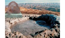 克拉瑪依泥火山位于獨(dú)山子北部的一個(gè)山峰上,主要有兩個(gè)噴出口兩者相距約100余米,較大的一個(gè)噴口直徑約60厘米,高出地面1米余。噴口內(nèi)是粘稠的泥漿,泥漿呈灰綠色,略帶油氣味,不停的向外翻泥泡,匯集的泥漿沿西南側(cè)的開口外溢。涌出的泥流在地表形成錐型丘,底部直徑在10米以上,表面是干裂的泥漿塊。泥火山所在的獨(dú)山子亦很有特色,該山的南北長(zhǎng)約7千米,東西寬約6千米,最高峰1283米,孤立的突兀于傾斜平原之上。