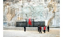 《水泊梁山記》是著名書畫大師范曾2002年專為水泊梁山風景區撰寫。先生懷著對英雄故里的一腔深情,慷慨揮毫、步其先人范仲淹《岳陽樓記》韻,全文368字,描述了水泊梁山河岳闊峻、草木蕭森的雄奇景象。《水泊梁山記》大型摩崖石刻,通高7米、長14米,距地面10余米,單字最大55厘米見方,最小字30厘米見方,通篇368字占地近100平方米,氣勢恢弘、蔚為大觀,形成了南有《岳陽樓記》、北有《水泊梁山記》的文化格局。為旅游勝地水泊梁山再添景觀,現為水泊梁山風景區的主要景點之一。與梁山粗獷豪放的山體及周圍環境交融,深化了景區的水滸文化內涵,成為進入梁山風景區山寨景區的標志性景觀,其所在廣場,亦成為在梁山舉行的與水滸、旅游有關的大型集會的場所之一。