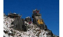 玉皇頂是“東岳”——泰山主峰之巔,因峰頂有玉皇廟而得名。玉皇廟始建年代無考,明成化年間重修。主要建筑有玉皇殿、迎旭亭、望河亭、東西配殿等,殿內祀玉皇大帝銅像。神龕上匾額題“柴望遺風”,說明遠古帝王曾于此燔柴祭天,望祀山川諸神。殿前有“極頂石”,標志著泰山的最高點。極頂石西北有“古登封臺”碑刻,說明這里是歷代帝王登封泰山時的設壇祭天之處。