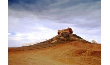 屬唐代護路烽燧,位于火焰山北麓一條干涸河道兩側(cè),七泉湖火車站正南11公里,有小路通遺址旁。七泉湖薩依烽燧為古代穿越火焰山通道上的重要遺址,現(xiàn)外表呈梯形,分上下兩層,每層又分左右兩室,在臺階可登上層瞭望周圍景觀。