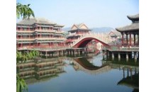 橫店明清民居博覽城,2001年開始籌建,2008年10月1日正式、全面地對外開放,占地面積900余畝,是集古建保護 、影視拍攝、旅游觀光、藝術展覽于一體的綜合性影視文化旅游區,也是橫店影視城中歷史最長、投資最大、內涵最為豐富的景區之一,分為“桃花源”和“秦淮河”兩大景系。 “桃花源”景系集中了從浙 、皖、等各地拆遷的明、清、民國時期的民居120余幢。因此,該城已被命名為“中國文物保護基金會示范基地”和“中國古民居保護基地”。