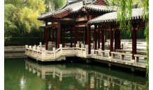 龍?zhí)叮挥跐?jì)南舊城西門外,洛源橋北,南臨趵突泉,北接大明湖。潭周名泉眾多,形成五龍?zhí)度海瑸闈?jì)南四大泉群之一,內(nèi)有泉池二十七處。公園的建園風(fēng)格兼具有南北造園之精華,是以潭池溪港等景觀構(gòu)成,質(zhì)樸野逸為特點(diǎn)的園林水景園。此水域風(fēng)景秀麗,柳絲醮波,鳴禽啾啾,荇藻漂浮,錦魚嬉戲,素有“夾岸桃花,恍若仙境”之美譽(yù),風(fēng)景幽雅獨(dú)具特色