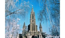 清光緒二十四年(戊戌1898年),法國(guó)巴黎天主教外方傳教會(huì)神父蘭祿業(yè)和古若瑟從長(zhǎng)春來(lái)吉林傳教。光緒二十八年(壬寅1902年)購(gòu)買(mǎi)了今天主教堂所占的土地,開(kāi)始籌建天主教堂。從1917年動(dòng)工,費(fèi)時(shí)10年,于民國(guó)十五年(丙寅1926年)落成。