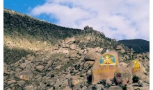 藏王墓屬全國重點(diǎn)文物保護(hù)單位,位于山南窮結(jié)縣宗山的西南方,背靠丕惹山(意為增長之山),是吐蕃王朝時(shí)期第29代贊普至第40代(末代)贊普、大臣及王妃的墓葬群,總面積385平方米。各陵墓封土高大,為土壘成的高臺(tái)丘墓。其上層土墩為橢圓形,墩頂極平坦,東西長約130米;下層為長方形土臺(tái),周邊不齊整。藏王墓的數(shù)目現(xiàn)難確定,能看到的有八九座。