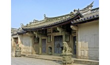 琳瑯滿目的建筑裝飾,使整座建筑物顯得更加富麗堂皇,首進門樓前理分置精致石獅一對,門樓屋架為雙面鏤空石雕。而最令人嘆為觀止的還是鑲嵌于門樓石壁上的四幅石雕.這四幅石雕分別以土農工商,漁樵耕讀,花鳥蟲魚為題材,每幅石刻都很好地運用了“之”字形的構圖,將不同時空的人、事、物集中在同一畫面,濃縮故事情有節。表現最富戲劇性的瞬間。