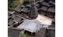 文斗苗寨位于錦屏縣西部,距縣城35千米,村寨坐東向西,坐落于青翠的半山上,前臨滔滔清水江,后為碧綠的烏斗溪環繞,離寨不遠有一處高達90余米的飛瀑,如詩如畫。全寨居住著400余戶苗家,民居均系木質吊腳樓。全寨掩映于參天古木之間,其中包括松杉、紅豆杉、銀杏、香樟和楠木。