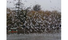 島上樹高林密,樹叉上老鴰巢穴星羅棋布。附近水域里還有鷺鷥、水雞、鴛鴦等水禽,所以此地又是水鳥的樂園。老鴰砬子孤立湖中,呈灰褐色,奇巖怪石堆積的巖崖,險峻陡峭。乘船繞到山背面,再遠望此山,老鴰山竟又變成了駝山。山前首,光光的砬子恰似光禿禿的駱駝脖子;山后首,駱駝身負重載地在水里行走,形象逼真,饒有趣味。