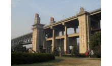 南京長江大橋,位于南京市西北面長江上,連通市區與浦口區,是長江上第一座由我國自行設計建造的雙層式鐵路、公路兩用橋梁。上層的公路橋長4589米,車行道寬15米,可容4輛大型汽車并行,兩側還各有2米多寬的人行道;下層的鐵路橋長6772米,寬14米,鋪有雙軌,兩列火車可同時對開。其中江面上的正橋長1577米,其余為引橋,是我國橋梁之最。