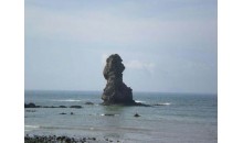 在嶗山腳下臨海斷崖南側,距岸百米處有一座17米高的石柱,形如老人坐在碧波之中,人稱“石老人”。老公公以手托腮,注目凝神,每天晨迎旭日,暮送晚霞,伴著潮起潮落,歷盡滄桑,不知度過了多少歲月。