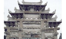 戚氏牌坊共有兩座,位于戚繼光祠南側約100米,牌坊里街東西兩端,東為母子節孝坊,西為父子總督坊。明嘉靖四十四年(1565年)朝廷為旌旗表戚氏家族而建。兩坊間距143米,均系四柱三間五樓云檐多脊花崗巖石雕坊,高9.5米,寬8.3米,進深2.7米。正間上下三坊,鏤雕“丹鳳朝陽”、“二龍戲珠”、“獅子滾繡球”、“魚龍變化”、“麒麟與鳳凰”等圖案,側間各有兩坊,亦分別雕飾花木鳥獸等圖案。