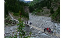 夏提風(fēng)景區(qū)位于溫泉縣哈日布呼鎮(zhèn)西北,阿爾夏提山以西,海拔1620米,由阿爾夏提V型河谷的中游部分河段組成,主要植被為云杉、胡楊、河柳等樹種。地?zé)釡厝哐郏渲幸浴跋扇弊淙喝祝撊0?695米,泉水從一塊石板裂縫中噴涌而出,景象壯觀。水溫38℃~42℃,可治療風(fēng)濕性關(guān)節(jié)炎,婦女不育癥等其他疾病,深受游人的歡迎。