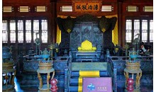 在麗正門北,是避暑山莊正殿。此殿規模宏大,殿前有外、內午門,朝房、樂亭,后有四知書屋、寢宮等 建筑。內午門為清帝每年到承德木蘭圍場進行秋獵時舉行小型閱射之所,門上懸有康熙我御書“避暑山莊”四字匾額,東西兩壁是乾隆御制《閱射六韻》詩刻石。殿建于清康熙四十九年(1710),乾隆十九(1754)全部用楠木改修,故又稱楠木殿。面闊7間,單檐卷棚歇山頂。