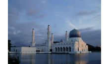 哥達京那巴魯市立清真寺座落在里卡士灣畔(Likas Bay),是一座典型的當代伊斯蘭教建筑,是馬來西亞夕陽景觀最壯麗的清真寺之一。它建于里卡士灣的人造湖上,感覺有如浮在水面之上,因而得到“水上清真寺”的美稱。令人驚嘆的白色建筑物造型,與藍天完美的連成一體。清真寺于1997年建成,占地一公頃,可容納最多12,000名教徒祈禱。