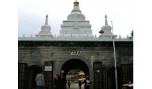 汗騰格里寺位于市南門。因寺院地處南門,故得名南門大寺。1902年進行過重建,1987年前,在原來南關清真寺的基礎上又加以擴建,改用今名“汗騰格里”(王中之王的意思),是市內(nèi)較大的維吾爾族清真寺之一。重建后的大寺,位于南門臨街,坐西向東,外觀壯麗,造型美觀,四座高大尖塔,簇擁著中間的大圓屋頂,兩側(cè)另有兩個小圓頂陪襯,具有濃郁而典雅的伊斯蘭建筑風格。