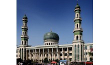 庫爾勒清真大寺位于庫爾勒市中心"老城"地方,1987年重建,規(guī)模宏偉,整潔寬敞,裝飾華麗,建筑風格頗新穎。殿堂、院內(nèi)可同時容納7千僑匯人作禮拜。迎街門樓高25米,分7層,每層有房間若干,為阿訇、毛拉司事休憩之處。殿堂內(nèi)設冷風機,頂棚高懸吊燈、吊扇。