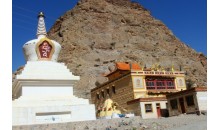阿貴廟位于蹬口縣沙金套海蘇木境內的狼山山脈中,坐落在漢代古城雞鹿塞西邊的溝內,是內蒙古地區(qū)紅教喇嘛的唯一寺廟。蒙古語意為有山洞的廟。占地1500畝。清朝定名為“宗乘寺”。為典型藏式建筑,順山勢建成大雄寶殿及陪殿,共981間。阿貴廟奉其創(chuàng)始人印度僧蓮花生為祖師。