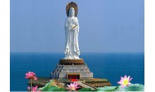 1993年中國國務院宗教局和海南人民政府批準興建南山寺,并在寺前的海中塑108米高之觀音圣像。此像由海南三亞南海海上觀音功德基金會發心敬建,三尊化一體,巍峨壯觀,實乃世界造像之最。敬造工程因其規模宏偉、意義殊勝、佛理底蘊豐富,被譽為“世界級、世紀級”的佛事工程。中國佛教協會趙樸初會長欣然為圣像題名——“南海海上觀音”。