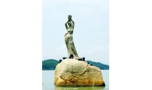 珠海漁女是珠海市的象征,位于珠海風景秀麗的香爐灣畔,矗立著一尊巨型石刻雕像——珠海漁女,她領戴項珠,身掮漁網,褲腳輕挽,雙手高高擎舉一顆晶瑩璀璨的珍珠,帶著喜悅而又含羞的神情,向世界昭示著光明,向人類奉獻珍寶。