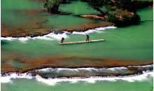 羅平多依河位于羅平縣城東南40公里,經(jīng)十萬大山峰叢至多依寨子進(jìn)入景區(qū)。景區(qū)從多依寨至“雞嗚三省”的三江口,全長12公里的河床上有近40個瀑布,兩岸古木修竹,色彩豐富,層次清晰。河水常年晶瑩剔透,蔚藍(lán)無邊。尤其是沿河兩岸盤根錯節(jié)的干年古樹,仿佛就是一座龐大的自然根雕藝術(shù)展覽館。河道蜿蜒曲折,布依村寨沿河而布,吊腳樓隱現(xiàn)樹叢竹林之間,一派十足的熱帶風(fēng)光畫面。一水合三江、清江一邊淌、渾水一邊流的奇觀異景就在此顯現(xiàn)。