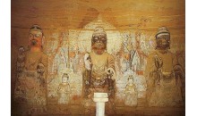 “炳靈”,是藏語“十萬佛”的音譯,意譯相當于漢語的“千佛山”、“萬佛洞”。炳靈寺石窟的正式營建始于西秦建弘元年(420年),后歷經北魏、北周、隋、唐,不斷進行開鑿修造,元明時期仍有修妝繪飾。現存窟龕183個,共計石雕造像694身,泥塑82身,壁畫約900平方米,分布在大寺溝西岸長約200米,高60米的崖面上。石窟以位于懸崖高處的唐代“自然大佛”(169窟)以及崖面中段的眾多中小型窟龕構成其主體。